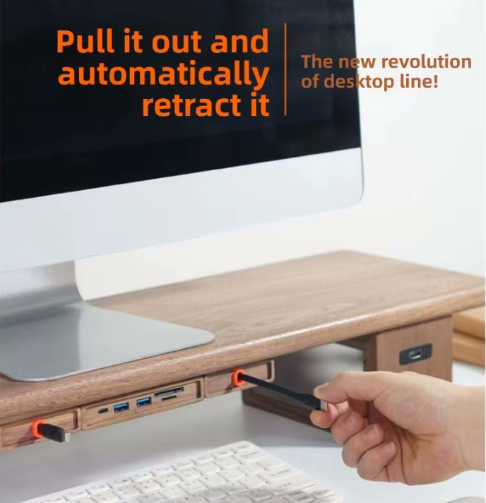 I’m also still looking for a clean solution for USB charging cables. Not everything can be charged wireless. Sometimes you need a charging cable to charge a headphone or keyboard. Most of the time you don’t need such cable and keep it out of sight. But when you need it, you don’t want to dive under the table to connect one.
