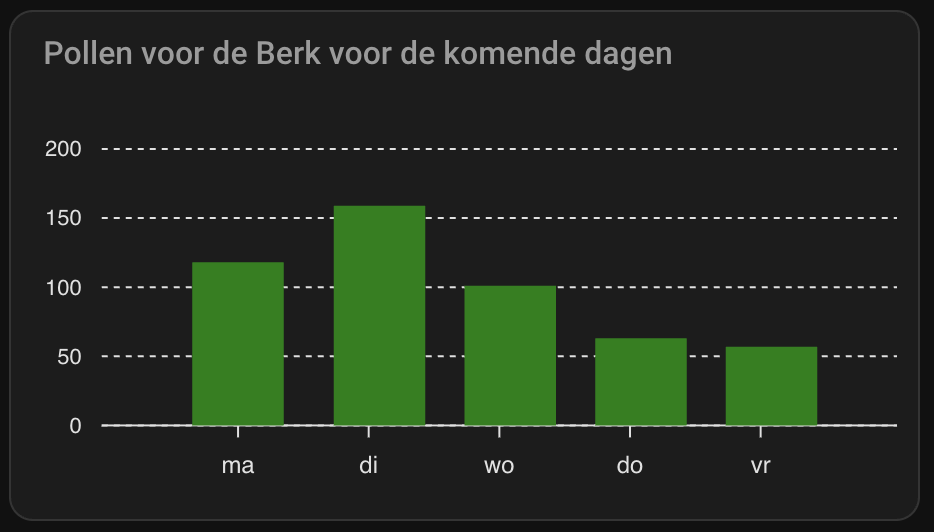 I created a bar graph with only the Berk tree data for today and the upcoming days. This is the tree which cause the most irritations for me. That’s why I use this specific one. You can easily change it another available tree, grass or weed which you prefer.